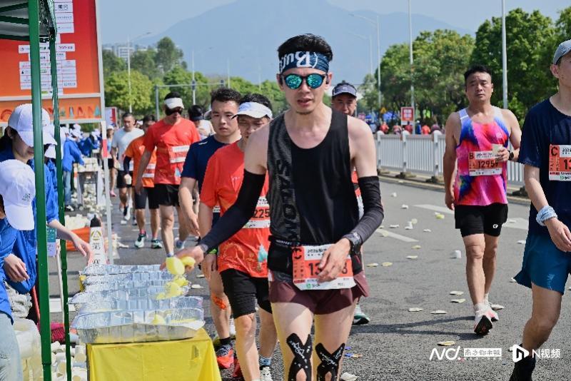 跑者们使用“清远鸡”冰水海绵降温。