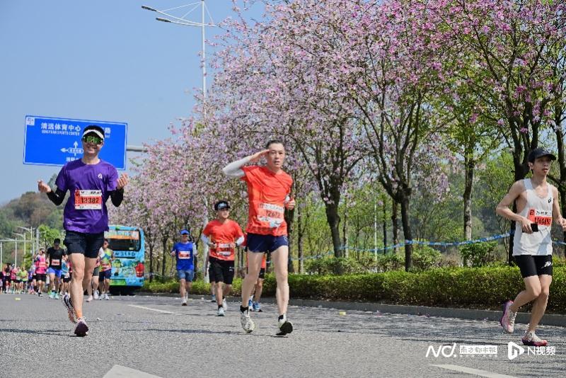 跑者们跑过清马最美“繁花赛道”。